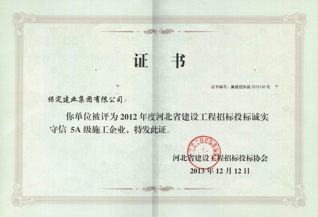 省建設(shè)工程招投標(biāo)誠(chéng)信5A企業(yè)