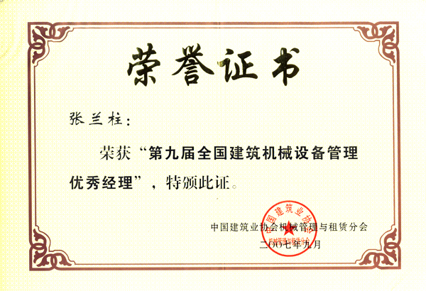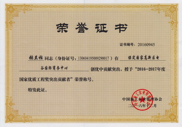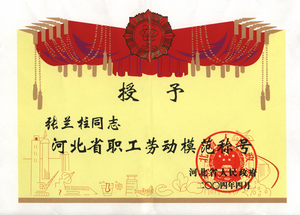 張?zhí)m柱同志以他杰出的工作業(yè)績被各級領(lǐng)導(dǎo)機(jī)關(guān)授予:全國、河北省、保定市建筑業(yè)優(yōu)秀企業(yè)經(jīng)理;優(yōu)秀企業(yè)家;優(yōu)秀共產(chǎn)黨員;優(yōu)秀黨務(wù)工作者;優(yōu)秀思想政治工作者;安全生產(chǎn)、工程質(zhì)量管理先進(jìn)個人;河北省優(yōu)秀經(jīng)理管理者;河北省建設(shè)系統(tǒng)勞動模范;河北省勞動模范等榮譽(yù)稱號