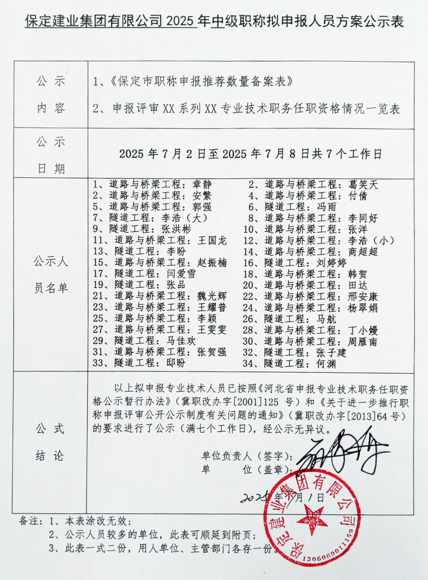 保定建業(yè)集團2025年中級職稱擬申報人員公示三