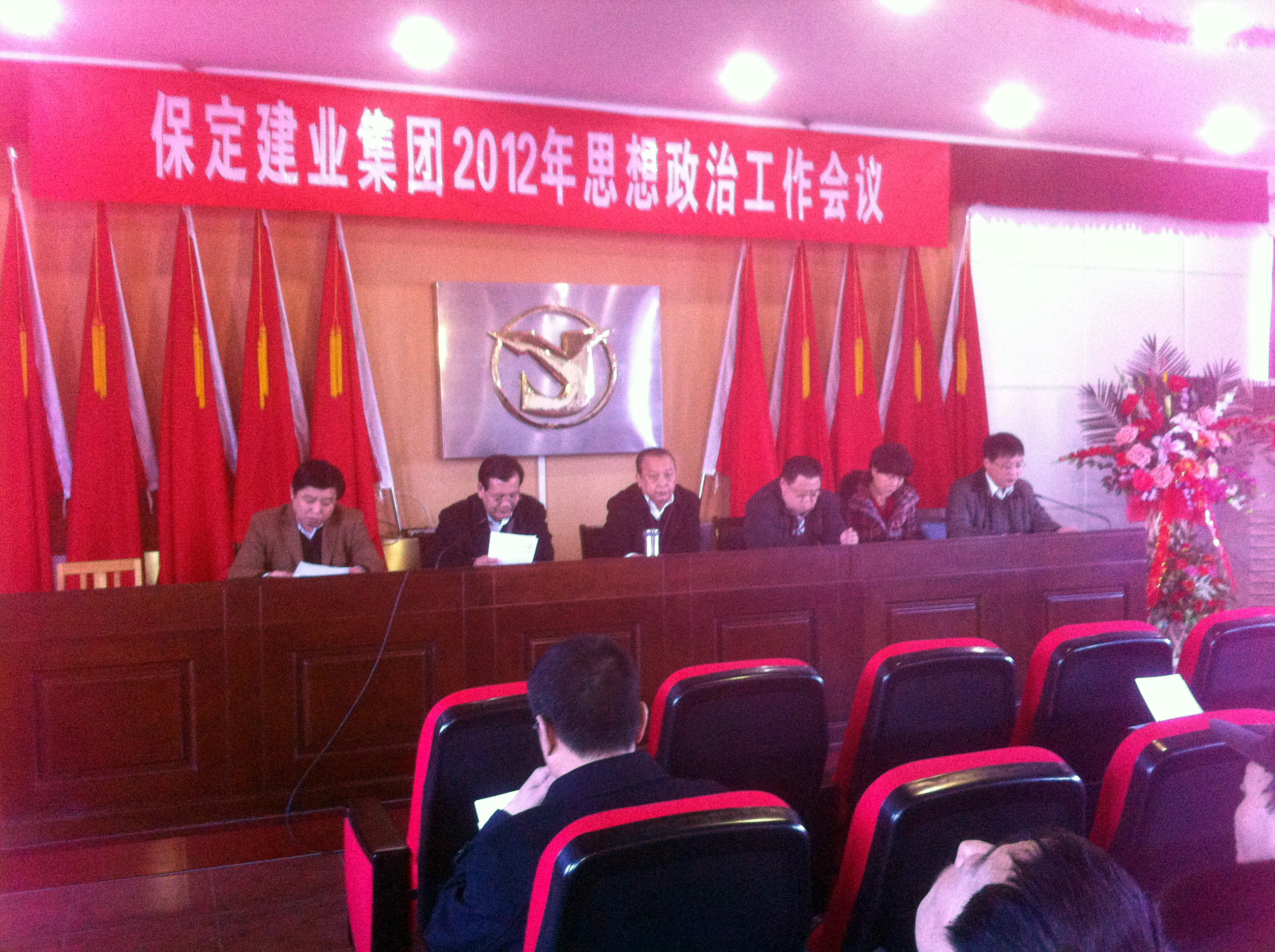 2012年3月14日,保定建業(yè)集團有限公司2012年思想政治工作會議在莊嚴的國歌聲中拉開了序幕,會議由黨委辦公室主任馬亞軍主持,集團各公司黨、政、工、團、婦、武裝、保衛(wèi)負責(zé)人參加會議。