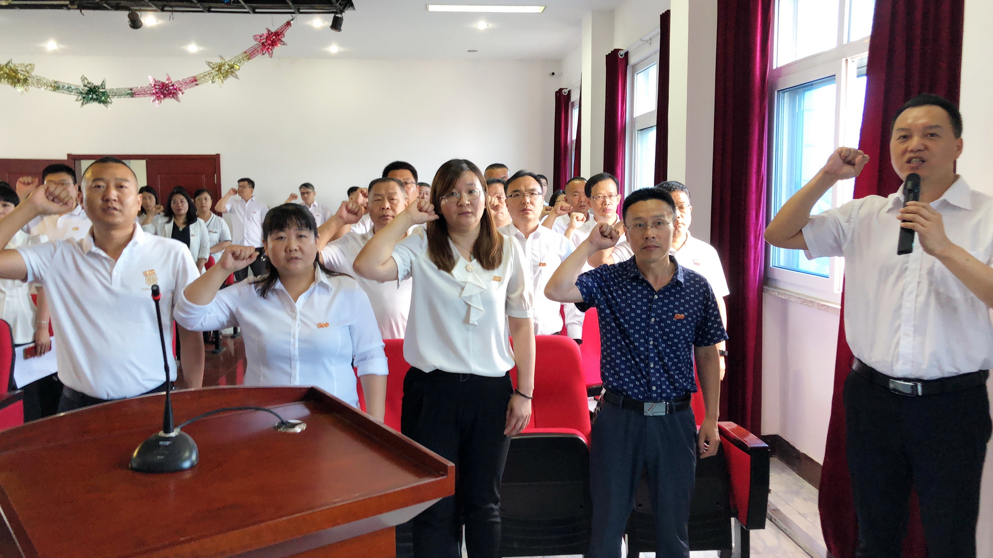 集團(tuán)黨委委員張軍輝帶領(lǐng)新黨員入黨宣誓,與會(huì)黨員一起重溫了入黨誓詞。莊嚴(yán)的宣誓聲,響徹耳畔、銘記于心。